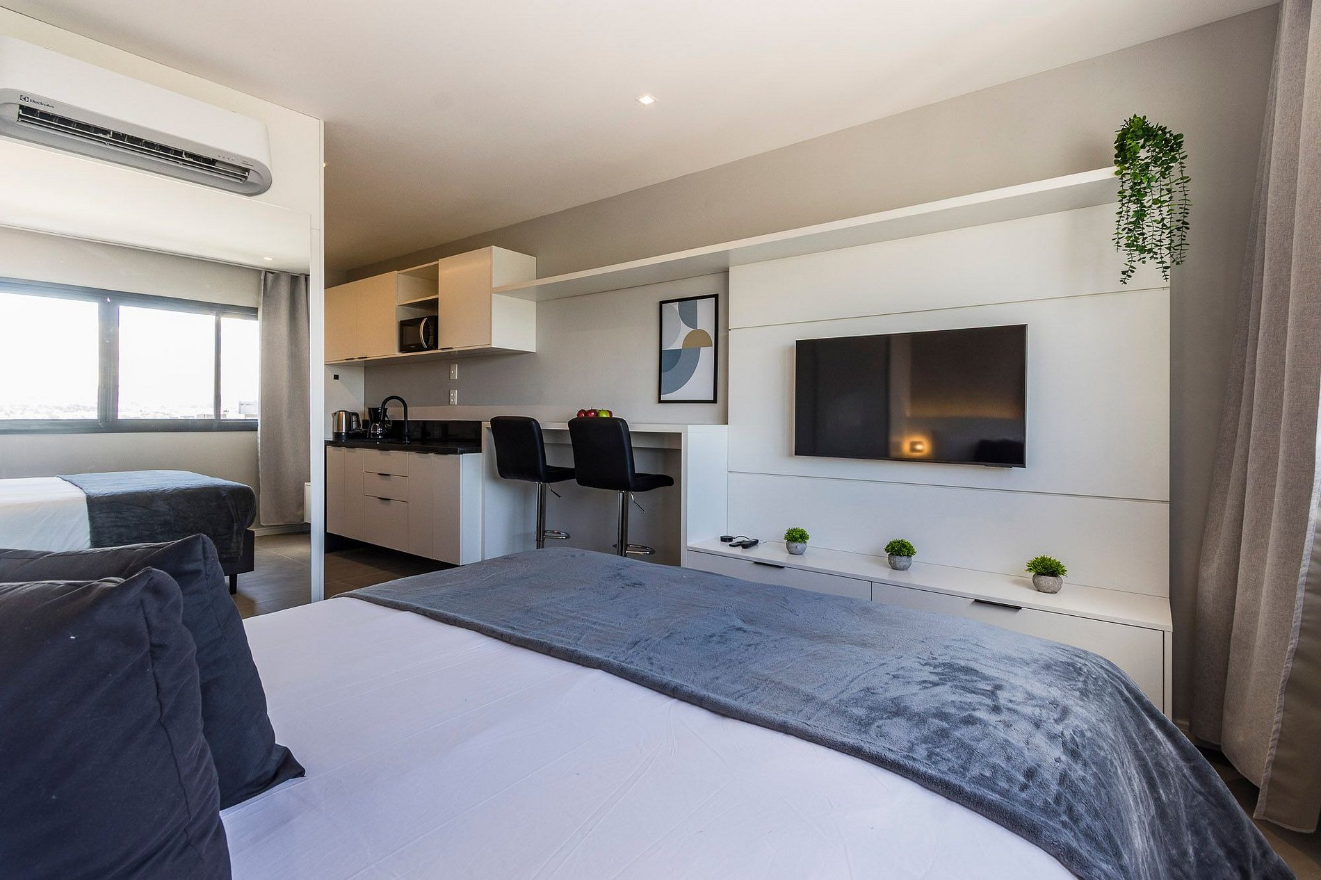 Apartamento amueblado listo para mudarse, alojarse o trabajar desde casa en GO Cidade Baixa, un edificio ubicado en el corazón del barrio de Cidade Baixa, uno de los más queridos de Porto Alegre.