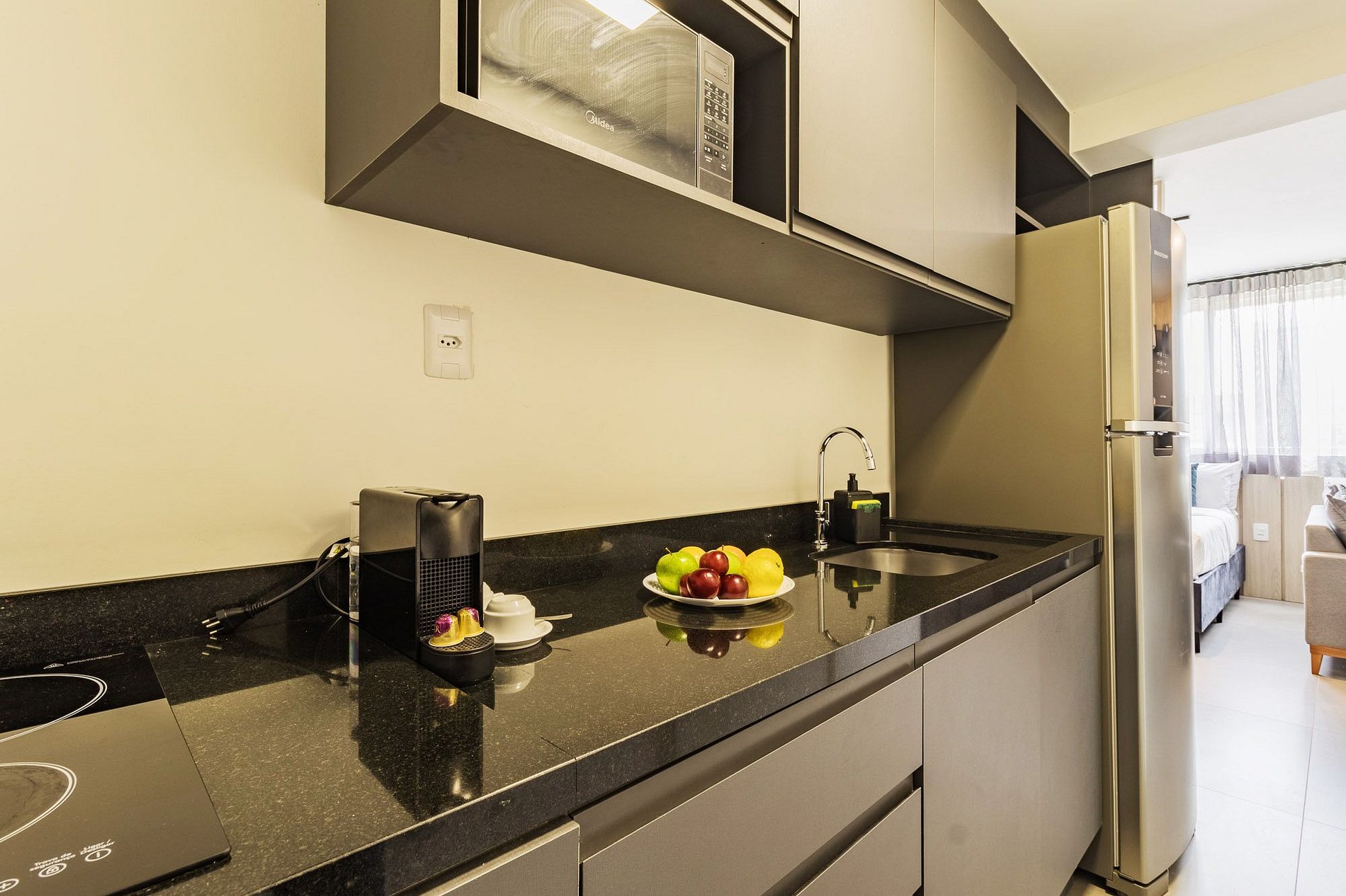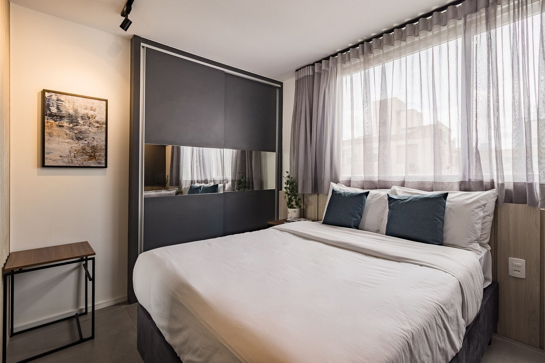 This apartment is equipped with: double bed, kitchen with cooktop stove, microwave, refrigerator, utensils/cutlery, split air conditioning, work/dining bench with chairs, sofa, Smart TV, Wi-Fi, hangers, closets and complete trousseau. Furthermore, there is no need to worry about sheets, blankets and towels, as the apartment is ready to move in, with bed and bath linen included. If you wish to change linen or clean during your stay, simply hire these services through My Way.