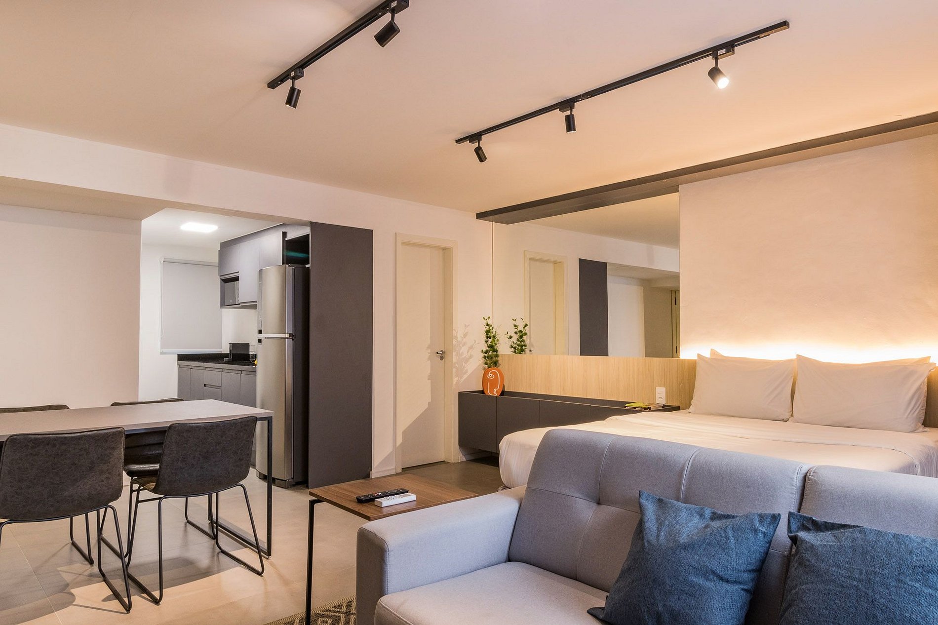 This apartment is equipped with: double bed, kitchen with cooktop stove, microwave, refrigerator, utensils/cutlery, split air conditioning, work/dining bench with chairs, sofa, Smart TV, Wi-Fi, hangers, closets and complete trousseau. Furthermore, there is no need to worry about sheets, blankets and towels, as the apartment is ready to move in, with bed and bath linen included. If you wish to change linen or clean during your stay, simply hire these services through My Way.
