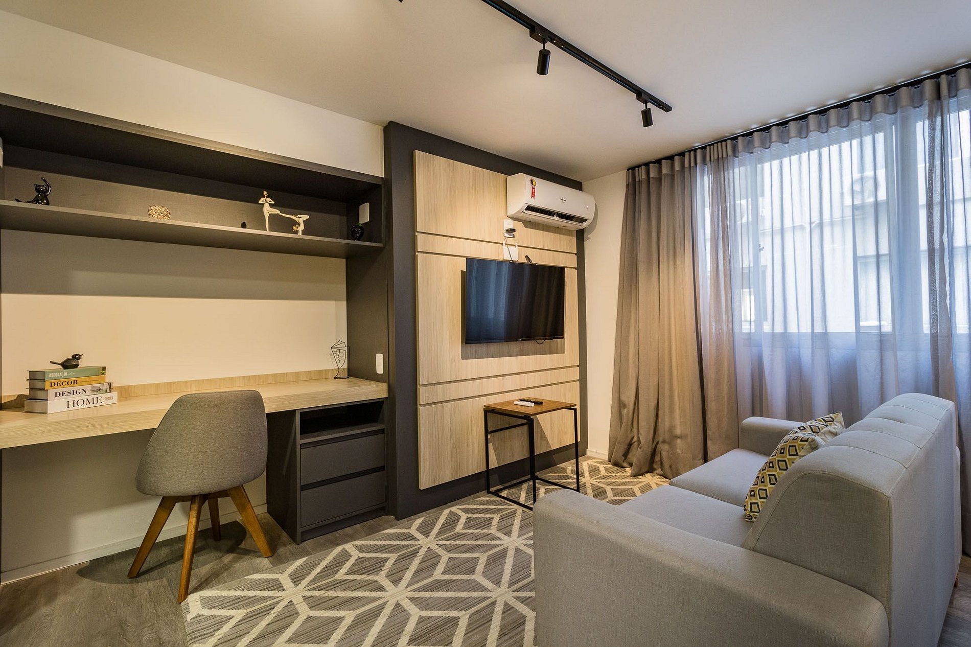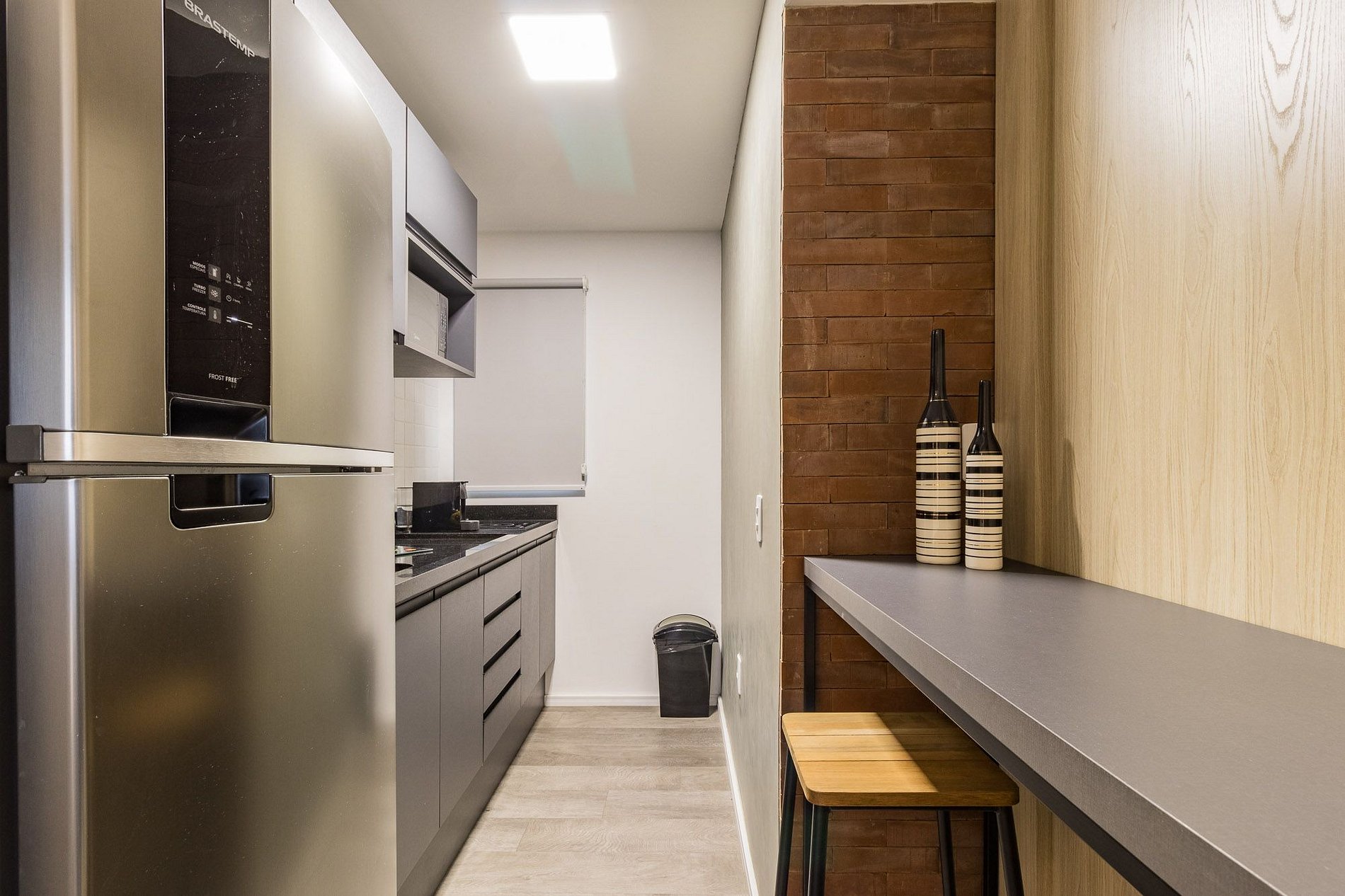 This apartment is equipped with: double bed, kitchen with cooktop stove, microwave, refrigerator, utensils/cutlery, split air conditioning, work/dining bench with chairs, sofa, Smart TV, Wi-Fi, hangers, closets and complete trousseau. Furthermore, there is no need to worry about sheets, blankets and towels, as the apartment is ready to move in, with bed and bath linen included. If you wish to change linen or clean during your stay, simply hire these services through My Way.