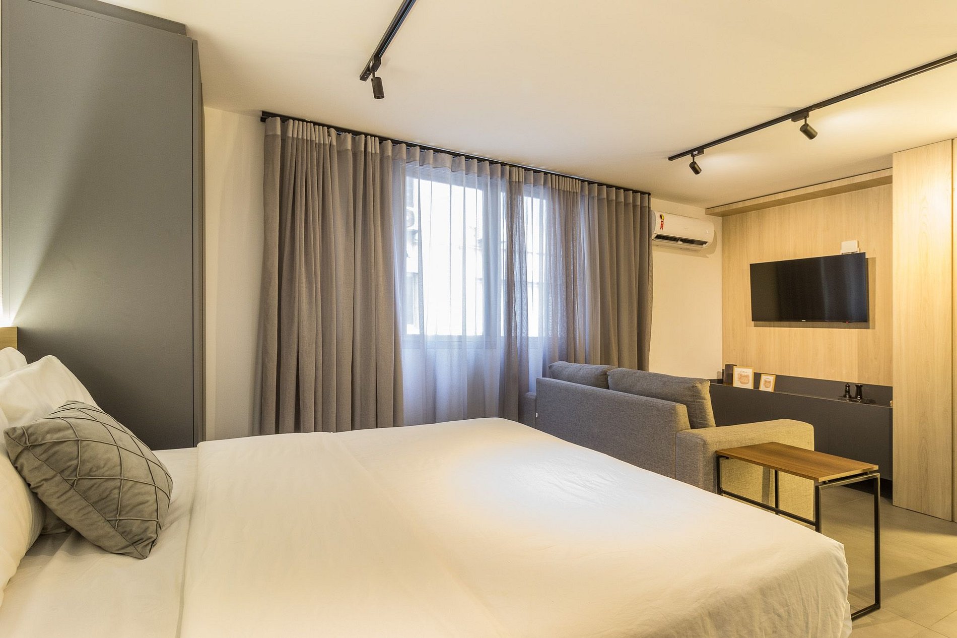 O Duque 1705 is pure comfort and convenience. Here you can enjoy a shared kitchen, quick snacks from the vending machine, and fresh coffee at any time. For those who need to work, there is an inspiring coworking space. Stay active in our gym, relax on the outdoor grill, and enjoy the incredible views of the city from the terrace. A unique experience awaits you, combining modernity, practicality and an exceptional stay. Book now and make this your home!