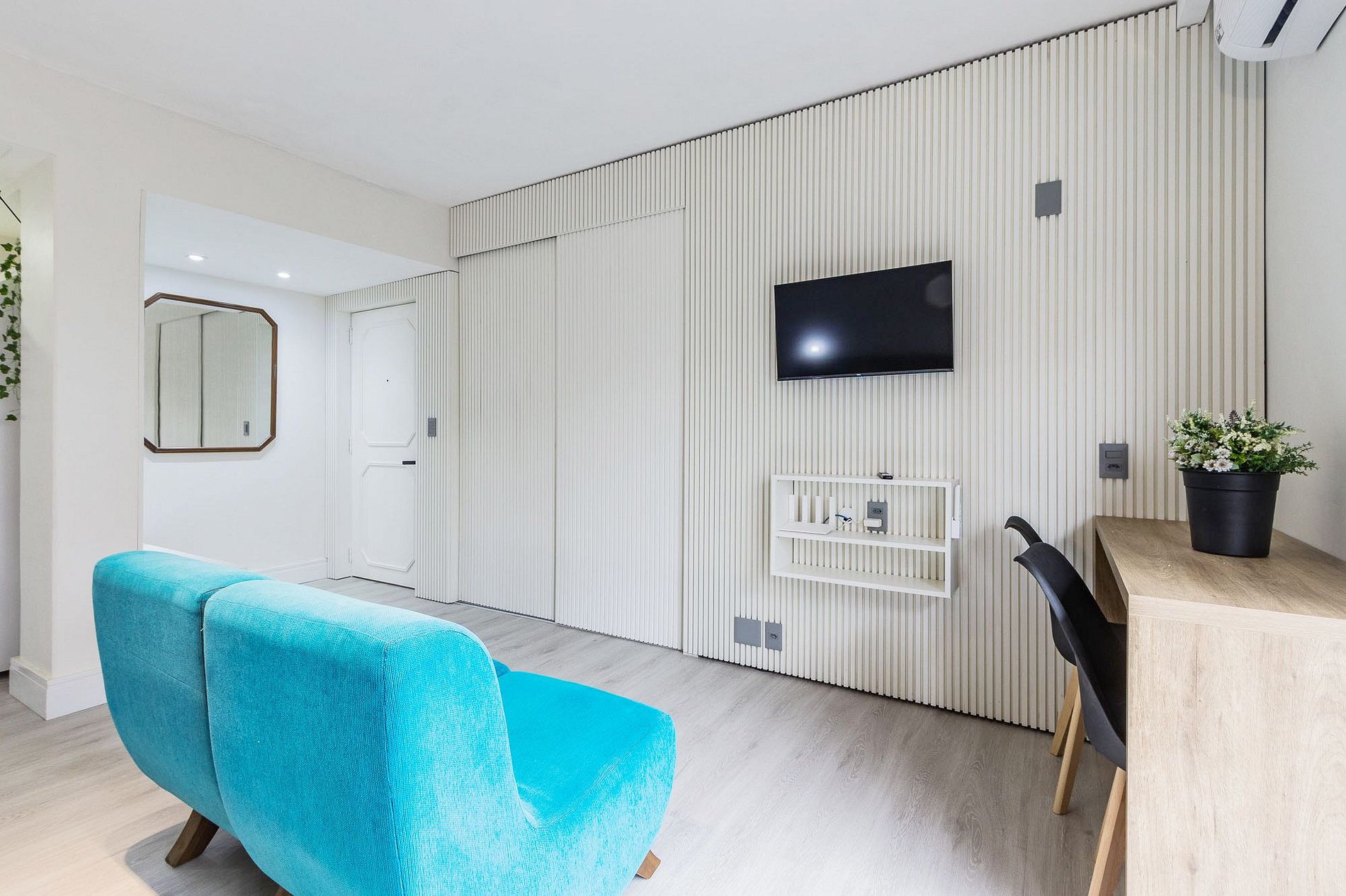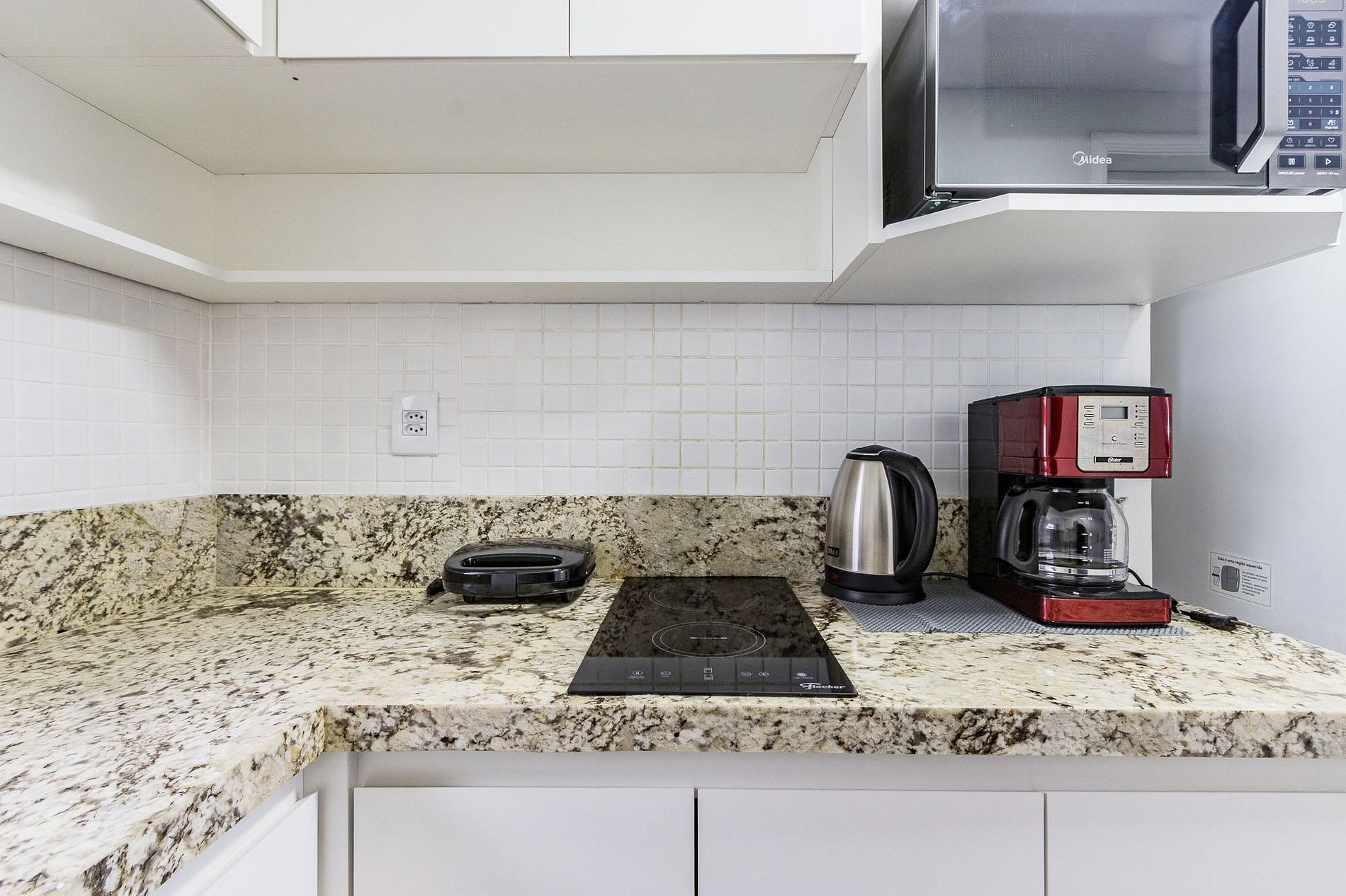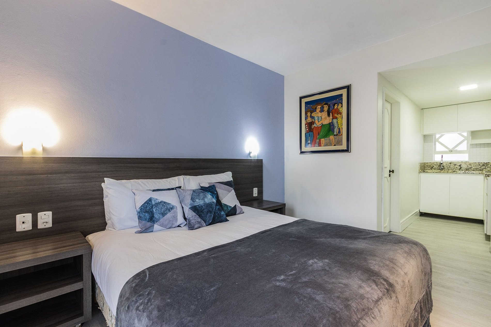 This apartment is equipped with: double bed, kitchen with cooktop stove, microwave, refrigerator, utensils/cutlery, split air conditioning, work/dining bench with chairs, sofa, Smart TV, Wi-Fi, hangers, closets and complete trousseau. Furthermore, there is no need to worry about sheets, blankets and towels, as the apartment is ready to move in, with bed and bath linen included. If you wish to change linen or clean during your stay, simply hire these services through My Way.