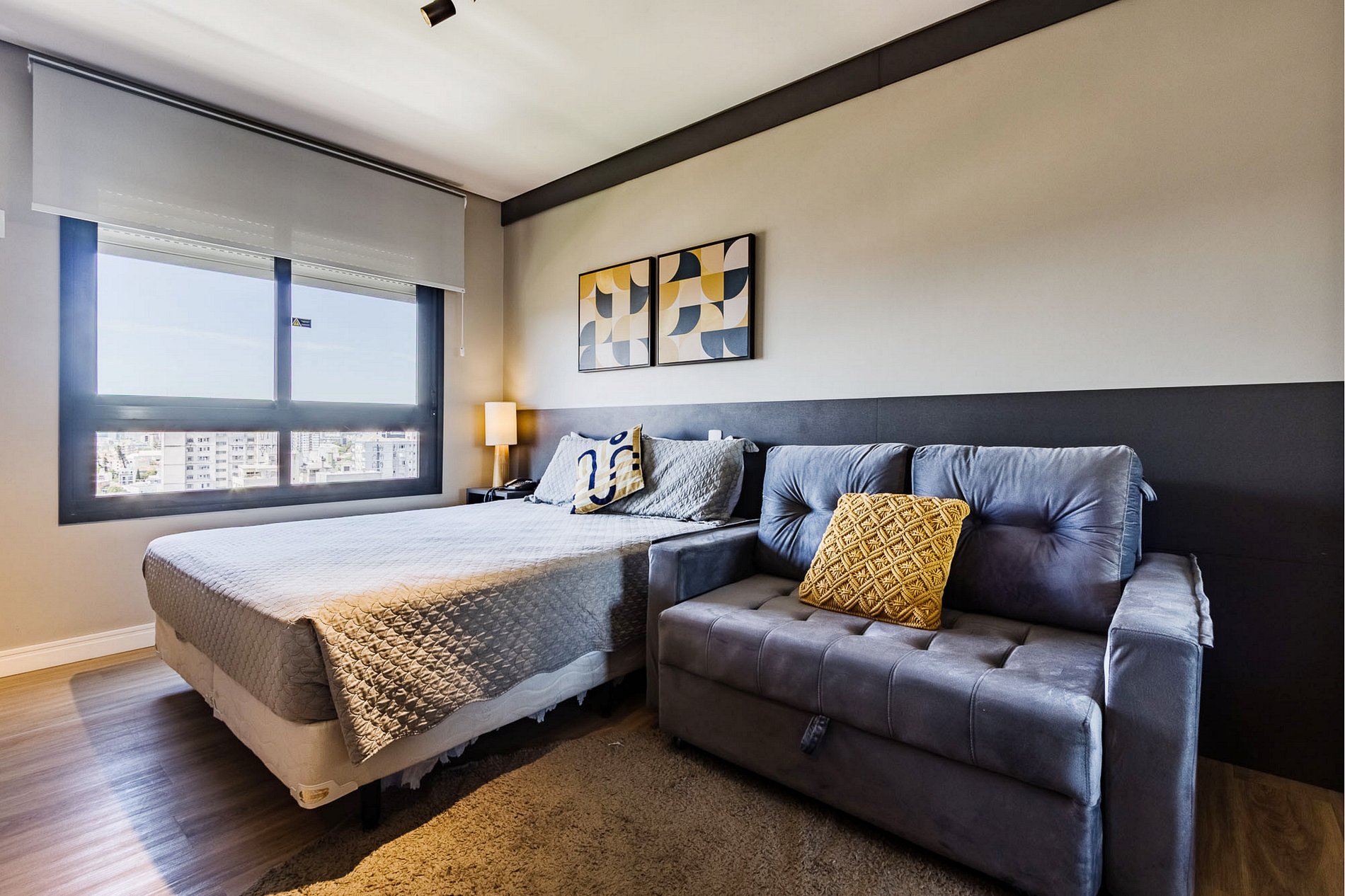 Furnished apartment ready for moving in, staying, or working from home at Century Park Living, a high-end coliving complex in the best area of Cidade Baixa, Porto Alegre. Flexible for short or long stays, with convenience, technology, and services at your disposal.