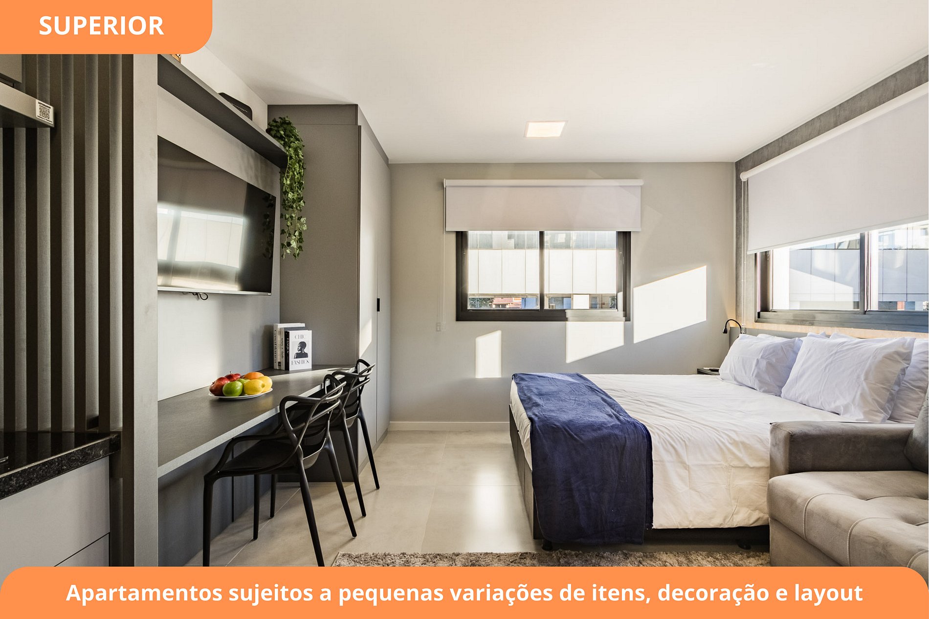 Furnished apartment ready for moving in, staying, or working from home in GO Carlos Gomes, an incredible and complete building in the Boa Vista neighborhood of Porto Alegre. Flexible for short or long stays, with convenience, technology, and services at your disposal.