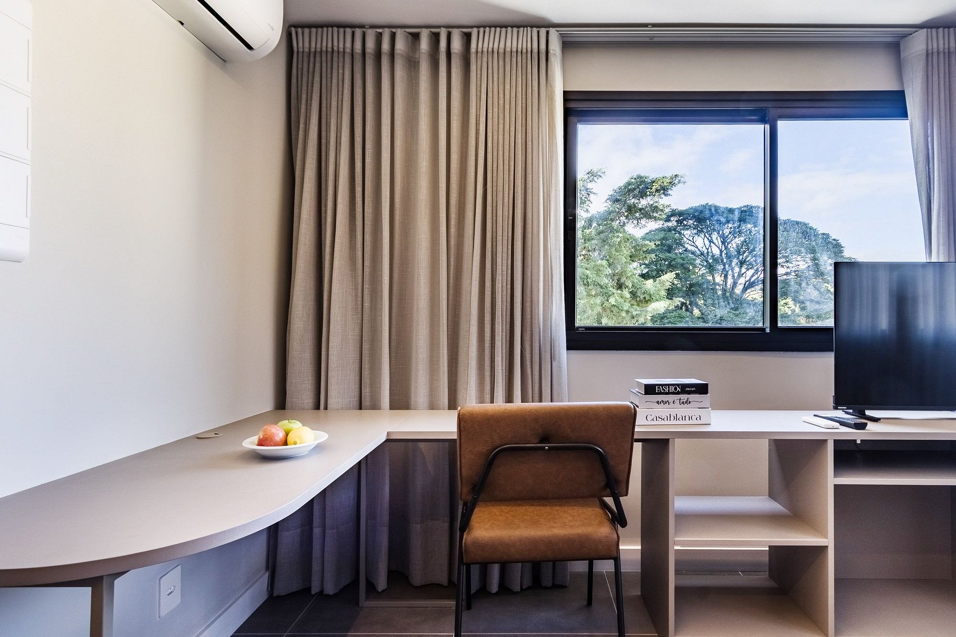 This incredible apartment is located in GO Carlos Gomes, in the Boa Vista neighborhood of Porto Alegre. It is 100% furnished and ready to welcome you for as long as you need, with all housing bills in a single account, with technology and services that can be contracted whenever you want!
