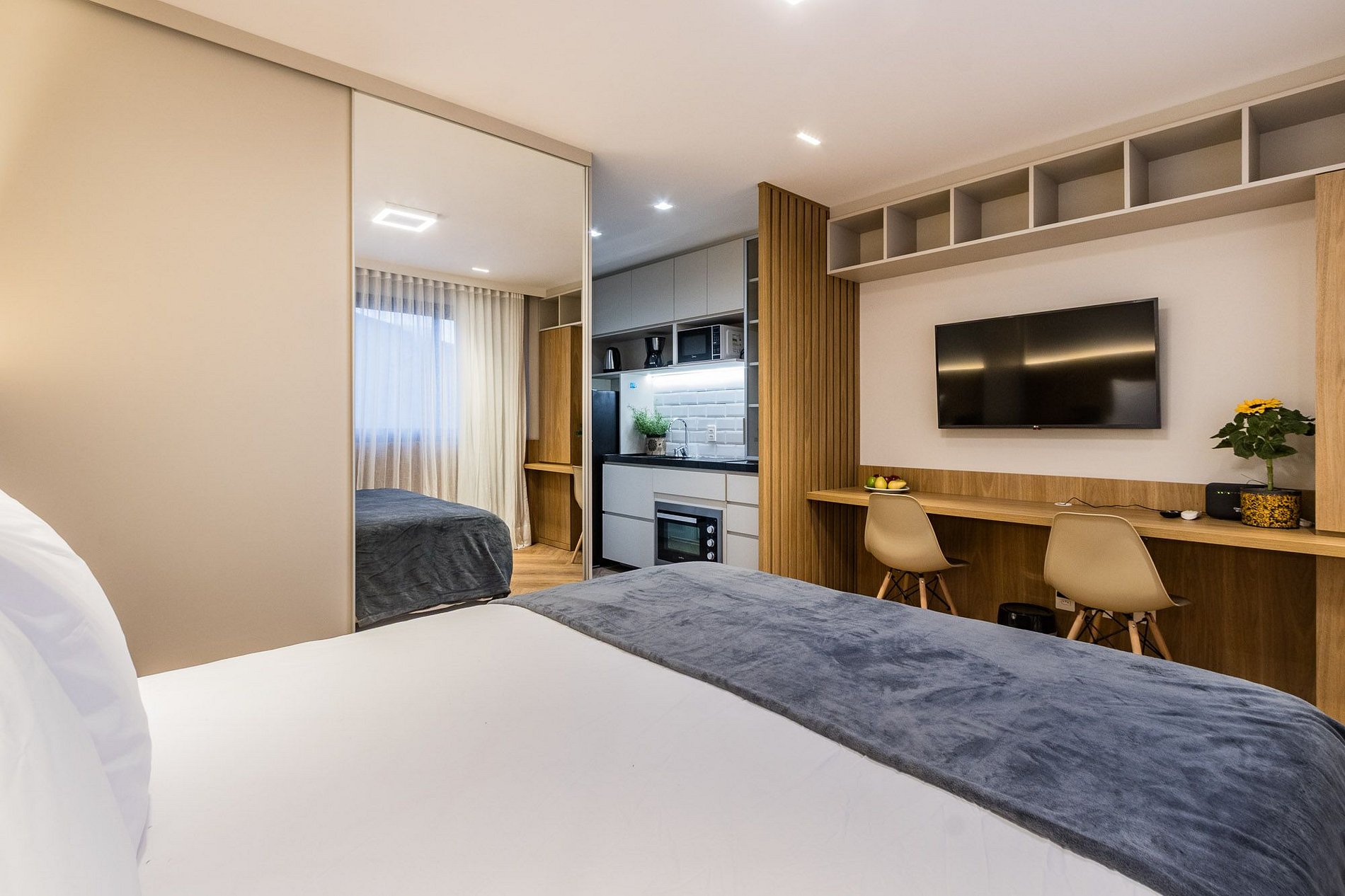 This incredible apartment is located in GO Carlos Gomes, in the Boa Vista neighborhood of Porto Alegre. It is 100% furnished and ready to welcome you for as long as you need, with all housing bills in a single account, with technology and services that can be contracted whenever you want!