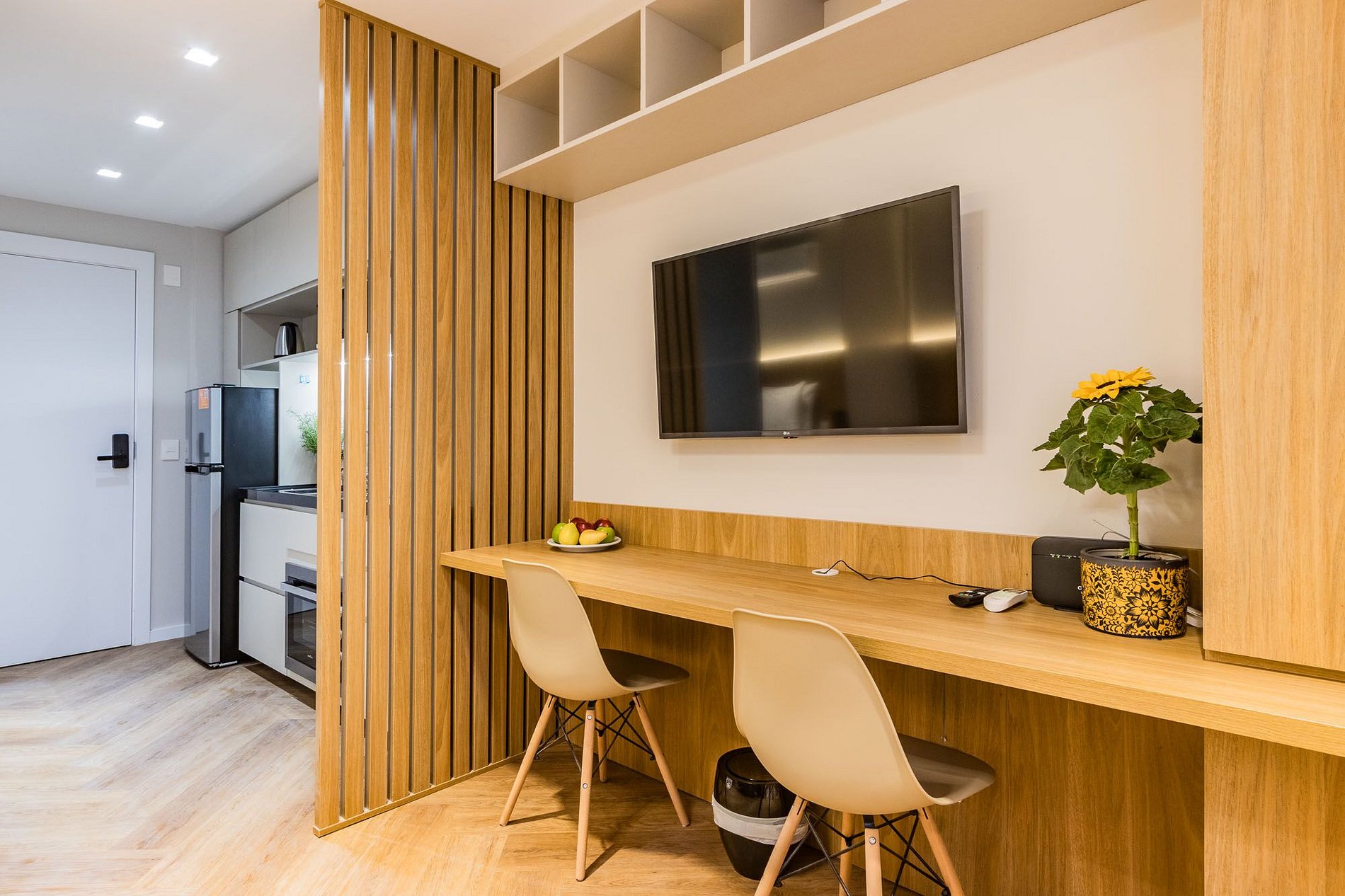 This incredible apartment is located in GO Carlos Gomes, in the Boa Vista neighborhood of Porto Alegre. It is 100% furnished and ready to welcome you for as long as you need, with all housing bills in a single account, with technology and services that can be contracted whenever you want!