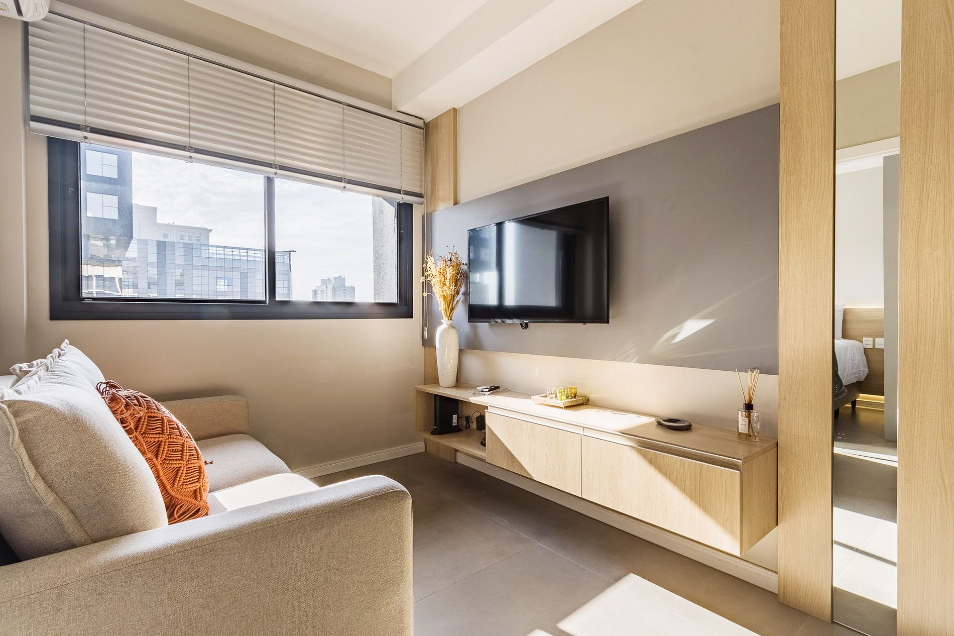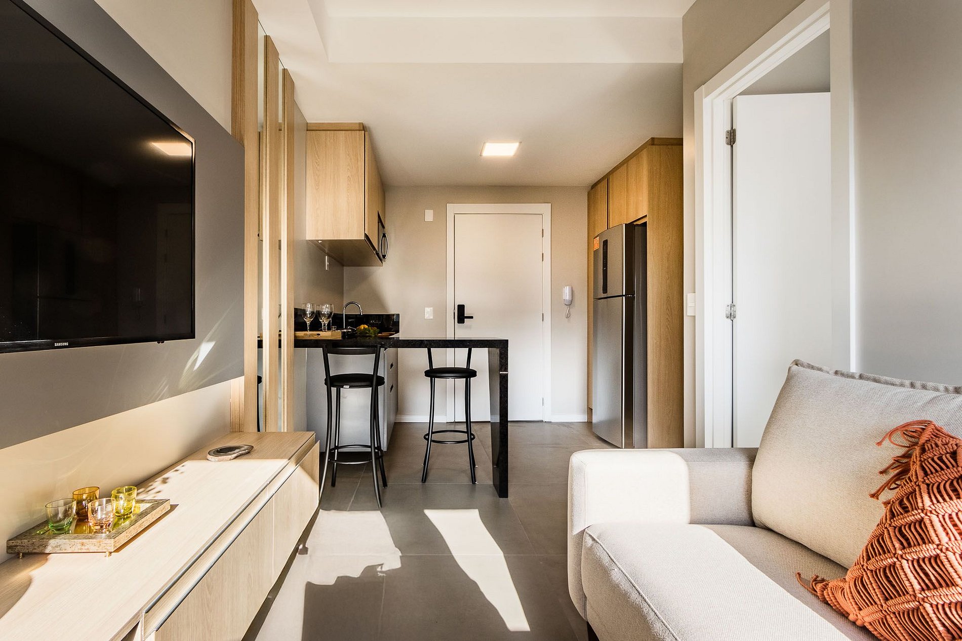 This incredible apartment is located in GO Carlos Gomes, in the Boa Vista neighborhood of Porto Alegre. It is 100% furnished and ready to welcome you for as long as you need, with all housing bills in a single account, with technology and services that can be contracted whenever you want!