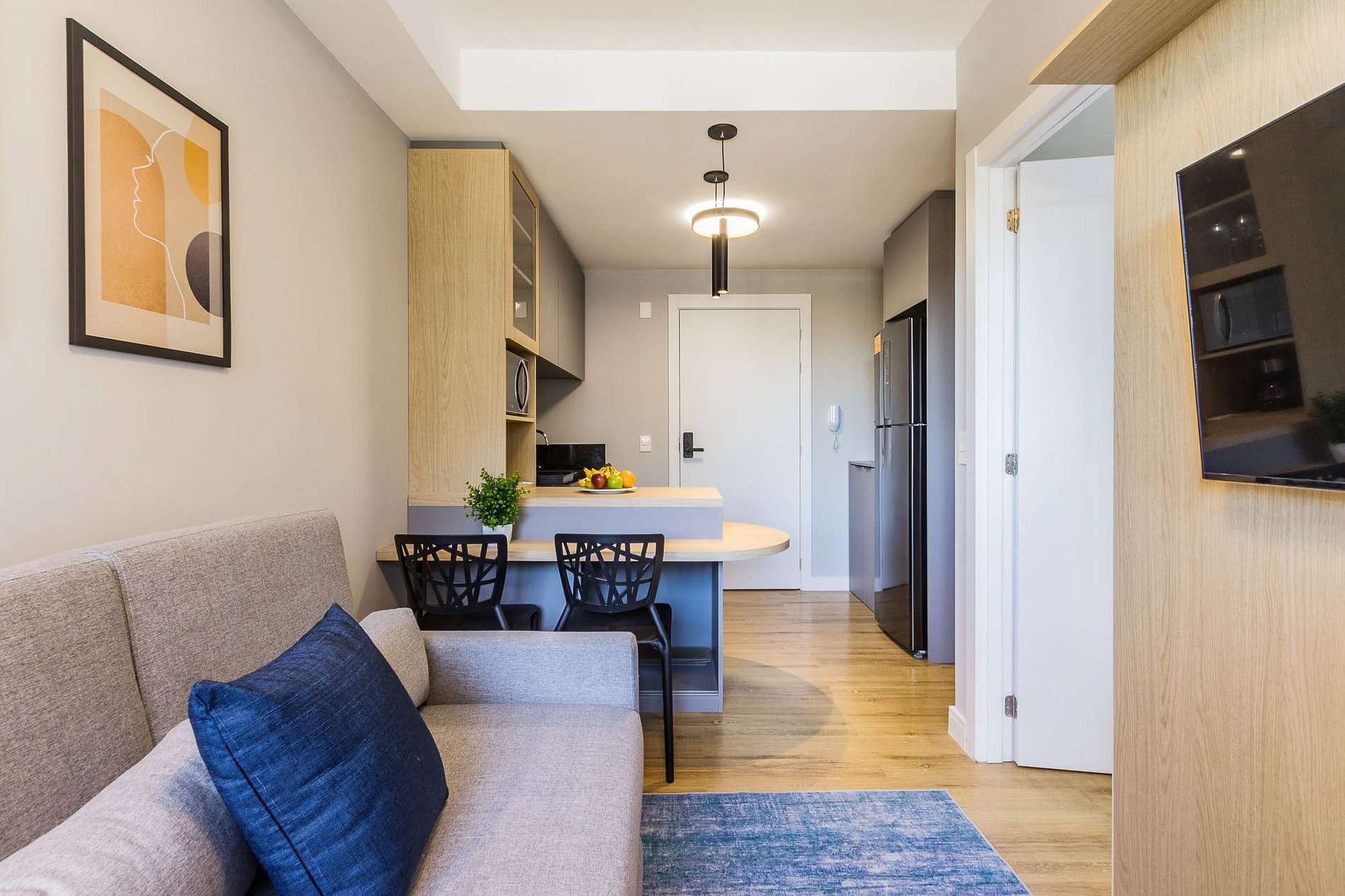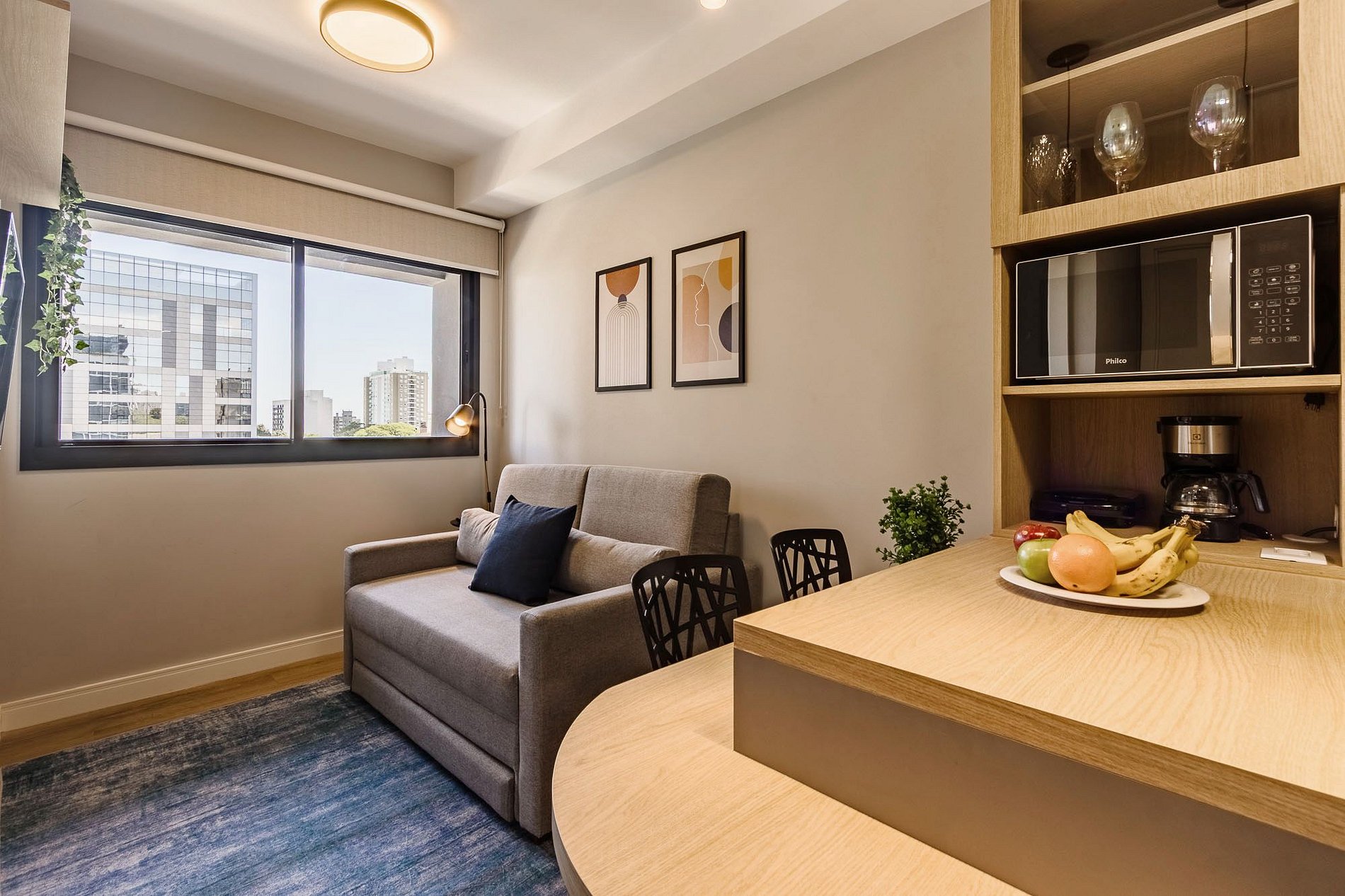 Furnished apartment ready for moving in, staying, or working from home in GO Carlos Gomes, an incredible and complete building in the Boa Vista neighborhood of Porto Alegre. Flexible for short or long stays, with convenience, technology, and services at your disposal.