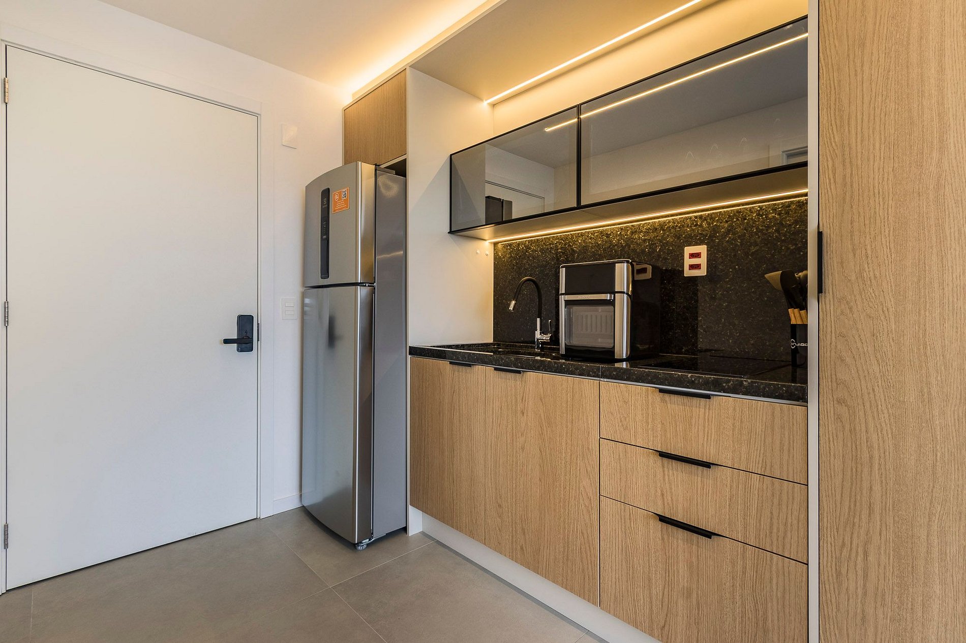 Furnished apartment ready to move in, stay in, or work from home in GO Cidade Baixa, a building located in the heart of the Cidade Baixa neighborhood, one of the most beloved in Porto Alegre.