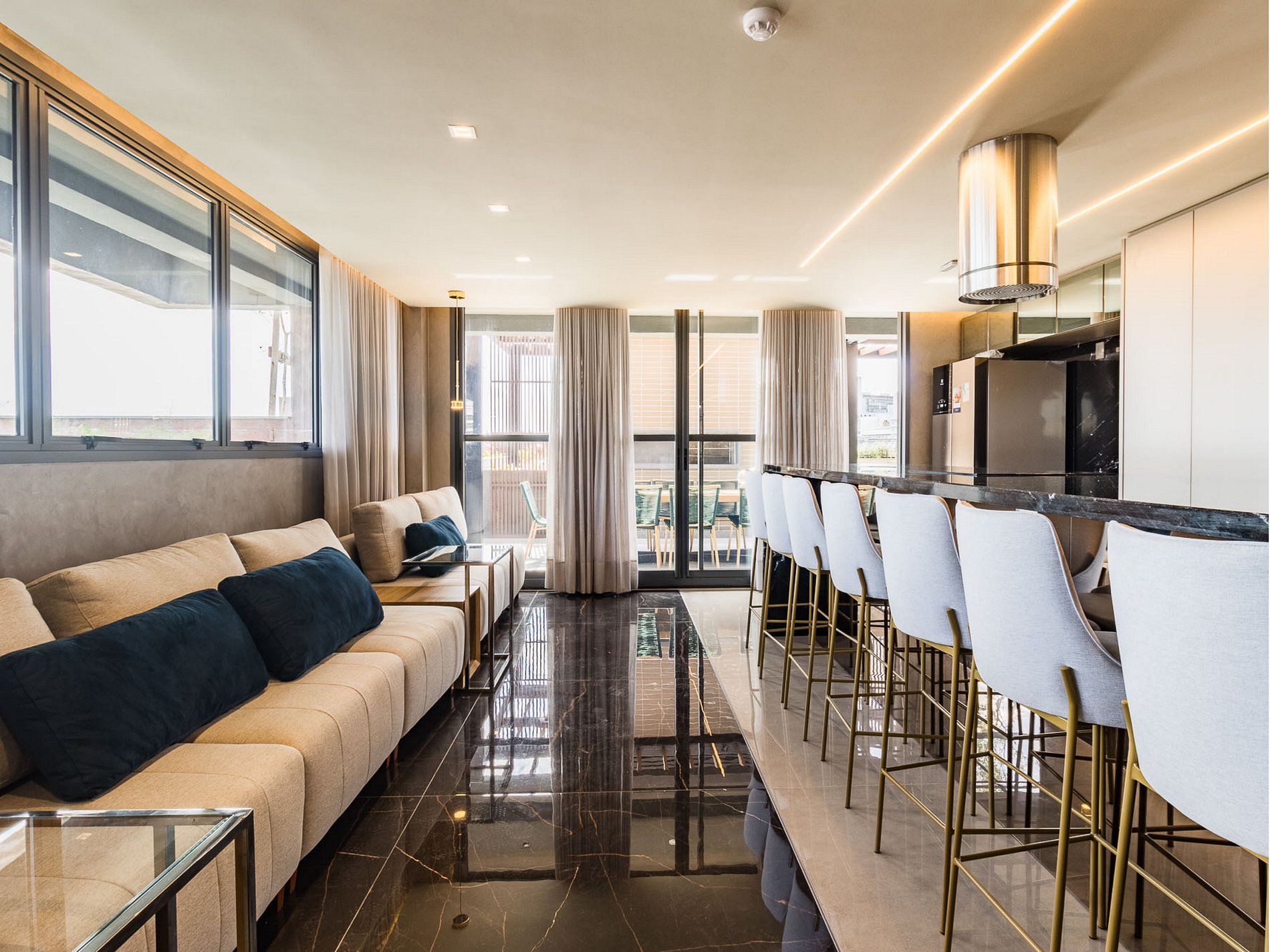 El edificio fue diseñado para combinar comodidad, conveniencia y ocio, e incluye: