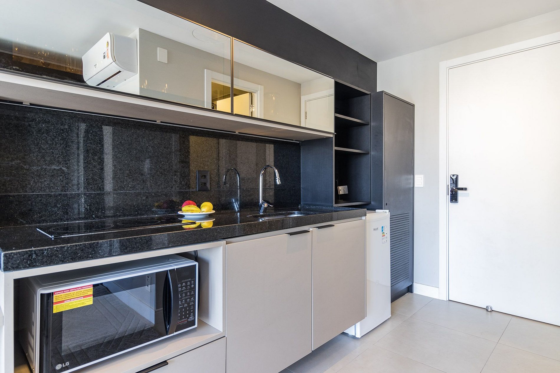 Ao entrar neste apartamento, você será recebido(a) por um ambiente cuidadosamente projetado para oferecer o máximo em comodidade. A cozinha, equipada com louças, talheres, micro-ondas, cooktop 2 bocas, frigobar, sanduicheira, máquina de café de cápsulas Nespresso e chaleira elétrica, é perfeita para preparar suas refeições favoritas. A sala de estar é aconchegante e conta com uma Smart TV para que você possa desfrutar de momentos de entretenimento e relaxamento. O ar-condicionado garante uma temperatura agradável durante todo o ano, assim como o secador de cabelo.