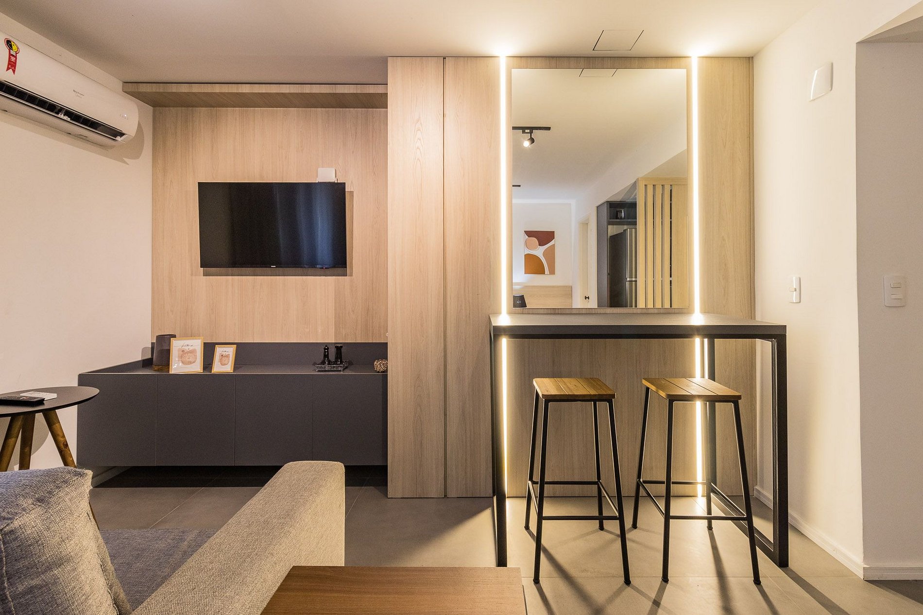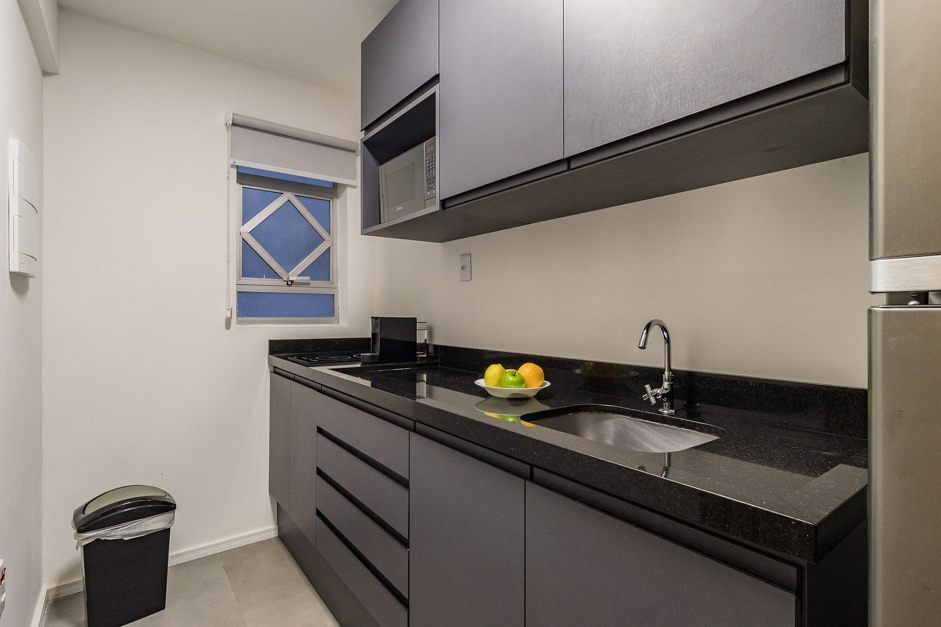 Esse apartamento está equipado com: cama de casal, cozinha com fogão cooktop, micro-ondas, geladeira, Nespresso (sem cápsulas), utensílios/talheres, ar condicionado split, secador de cabelo, bancada para trabalho/refeição com cadeiras, sofá, Smart TV, Wi-fi, cabides, armários e enxoval completo. Além disso, não é necessário se preocupar com lençóis, cobertores e toalhas, pois o apartamento é fornecido pronto para morar, com roupas de cama e banho inclusas. Caso deseje troca de enxoval ou limpeza durante sua estadia, basta contratar esses serviços através da My Way.