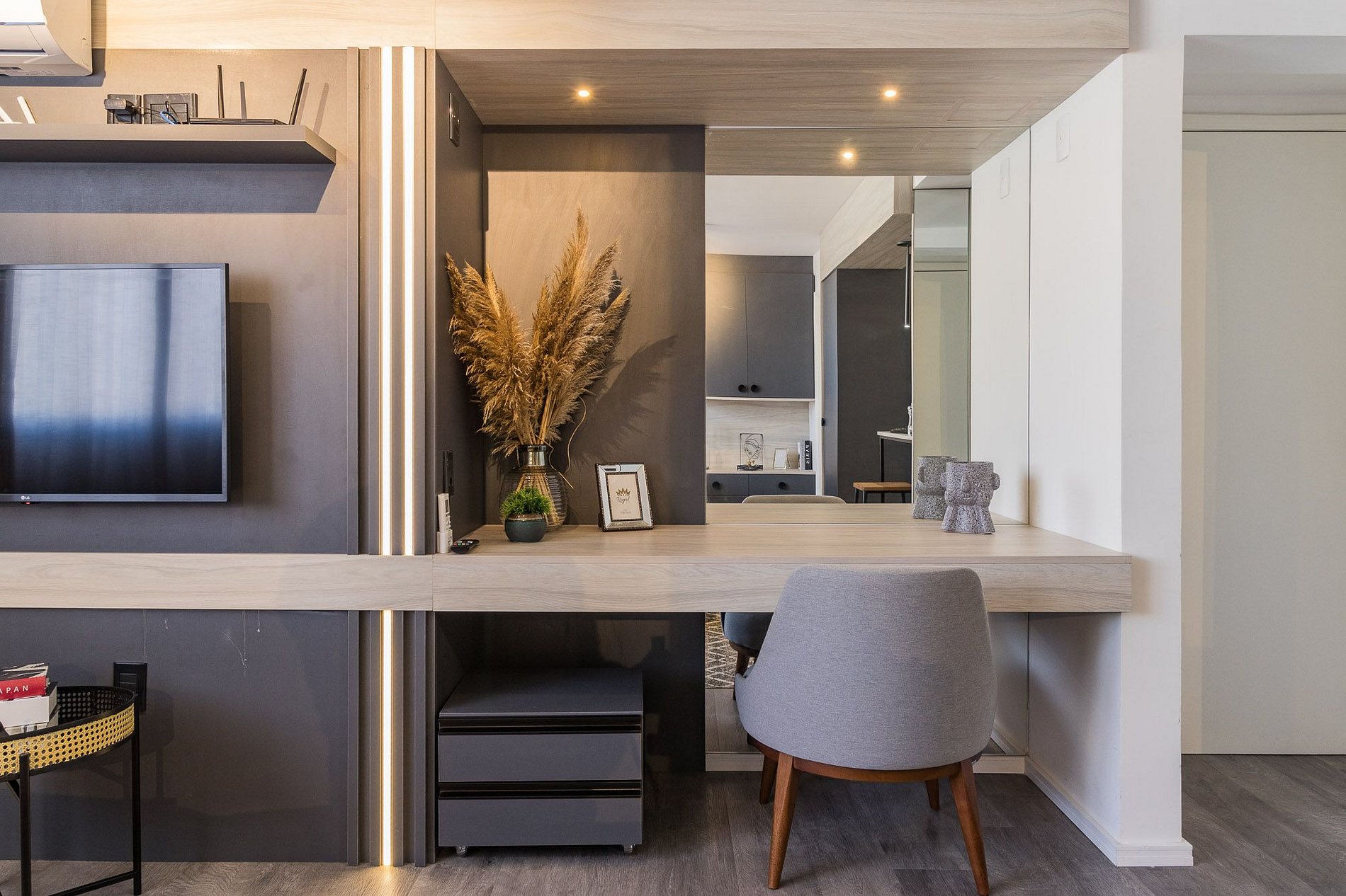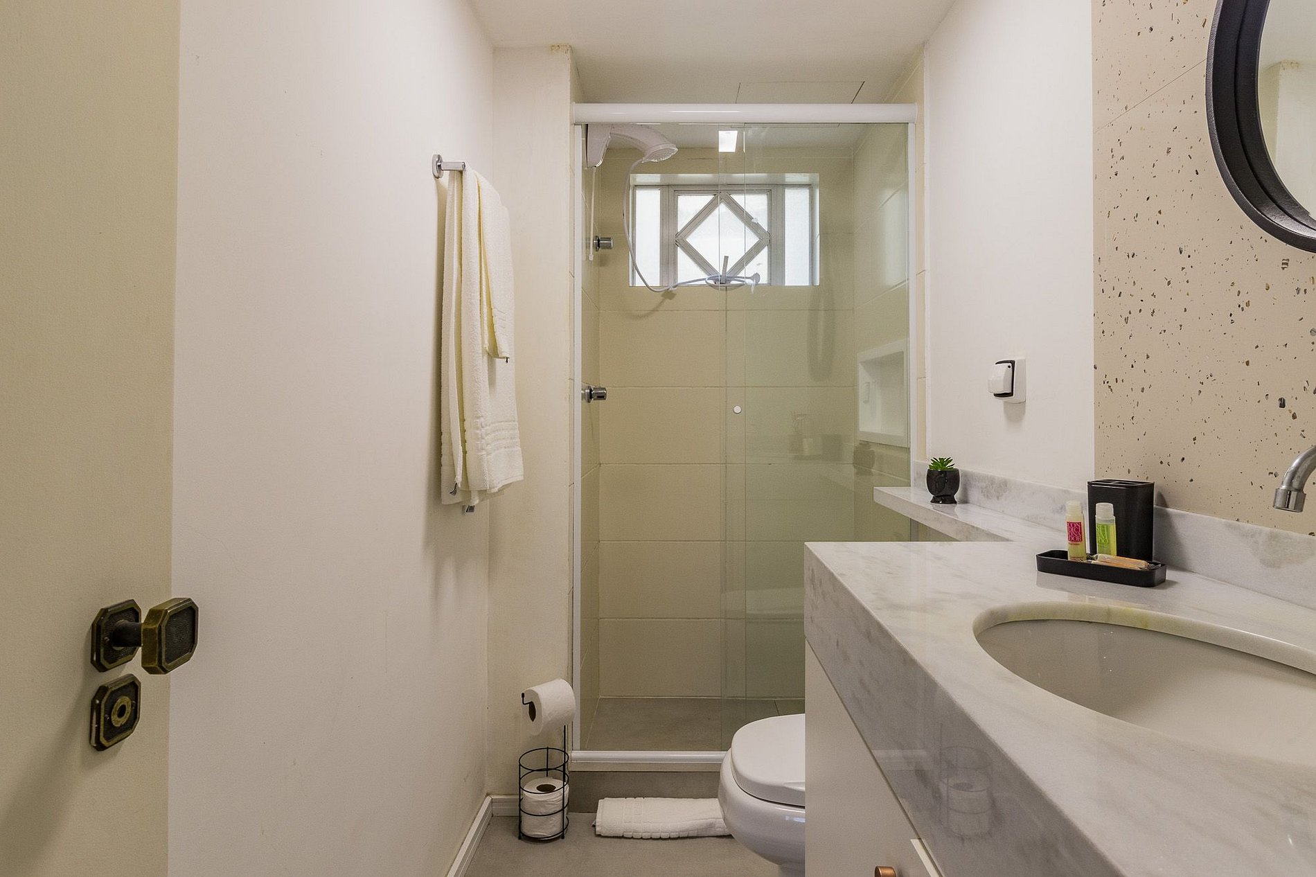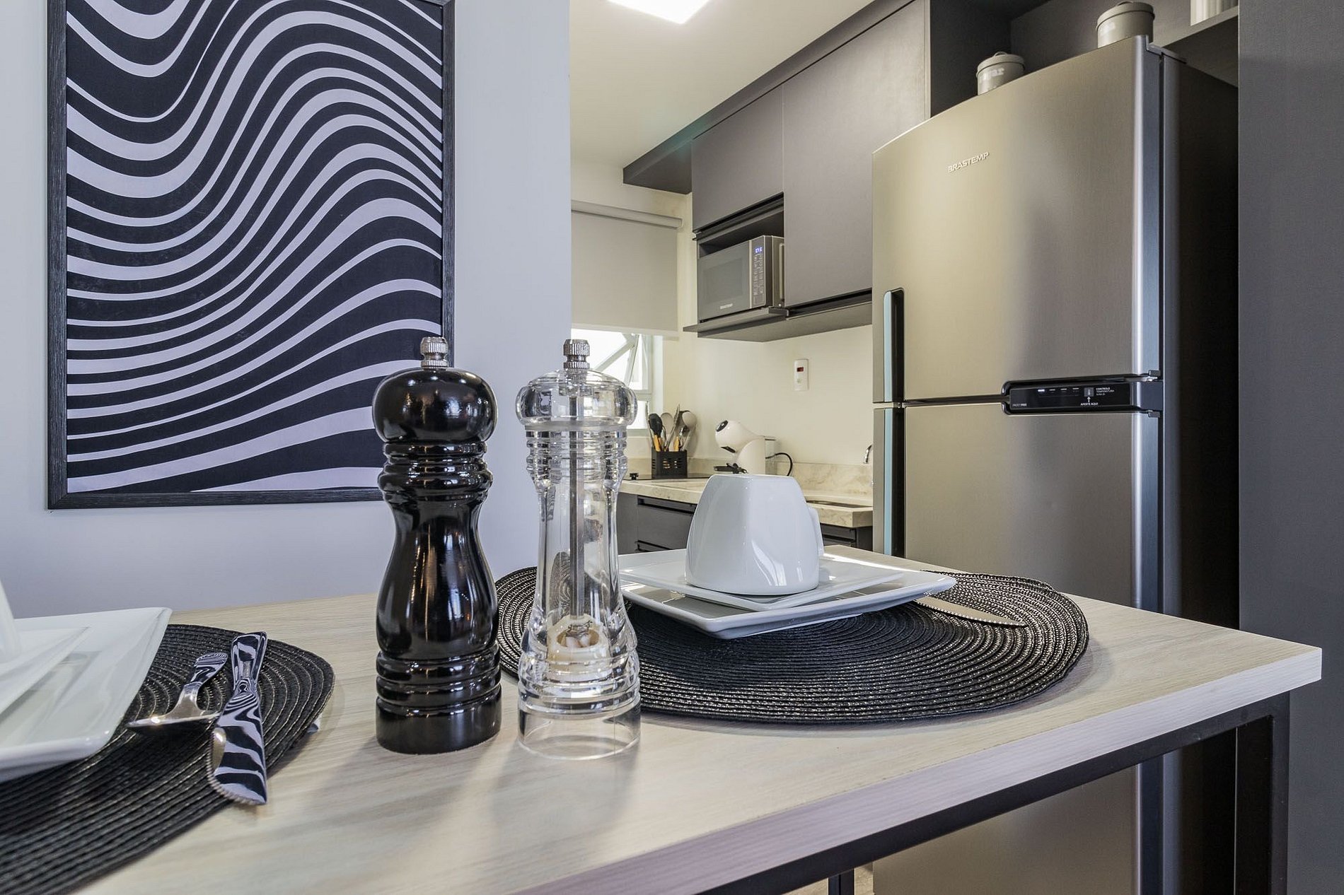 Esse apartamento está equipado com: cama de casal, cozinha com fogão cooktop, micro-ondas, geladeira, chaleira elétrica, Nespresso, utensílios/talheres, secador de cabelos, ar condicionado split, bancada para trabalho/refeição com cadeiras, sofá, Smart TV, Wi-fi, cabides, armários e enxoval completo. Além disso, não é necessário se preocupar com lençóis, cobertores e toalhas, pois o apartamento é fornecido pronto para morar, com roupas de cama e banho inclusas. Caso deseje troca de enxoval ou limpeza durante sua estadia, basta contratar esses serviços através da My Way.