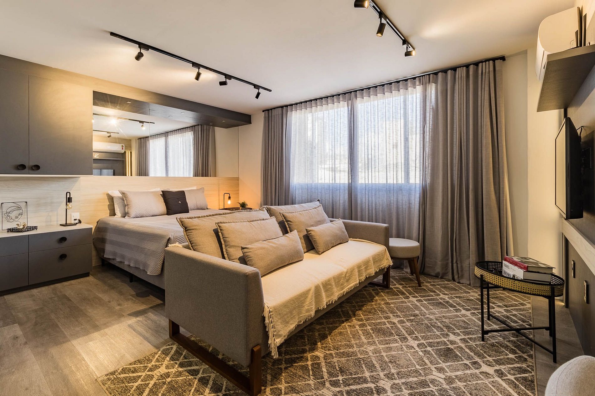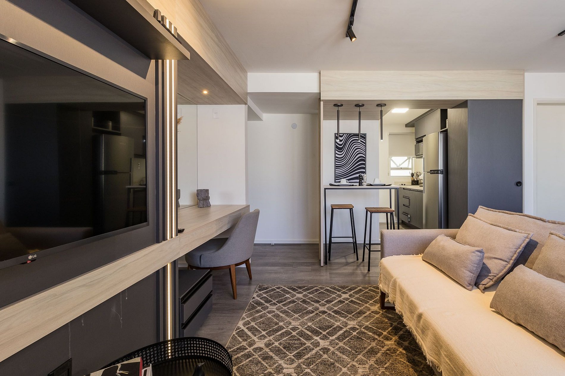 O apartamento é tipo "studio", possui boa decoração, sofá e cama confortáveis, Smart Tv e internet de boa e qualidades, eletrodomésticos como refrigerador e fogão por indução novos, além de uma cafeteira. A louça, incluindo pratos, xícaras e talheres também é de qualidade. Apesar de os ambientes serem integrados, a iluminação é "independente" entre eles. O prédio possui uma pequena academia, com poucos equipamentos, mas que atende a necessidades mais básicas de viajantes que querem exercitar-se durante a estadia. As vistas, tanto do apartamento em si como do prédio, no andar térreo e no terraço, são muito bonitas, é possível ver outras ruas e prédios do bairro, para quem curte isso também é um ponto positivo. O acesso ao prédio e ao apartamento é por meio de senha eletrônica, bastante prático e seguro e, apesar de ter tido alguns problemas, nada que não fosse resolvido logo após duas ou três tentativas ou em contato com o suporte da acomodação via WhatsApp. Localização excelente, próxima de supermercados, hospitais, universidades, bares e lanchonetes e de pontos turísticos conhecidos da capital gaúcha, como o Parque Redenção, Cidade Baixa e Theatro São Pedro.