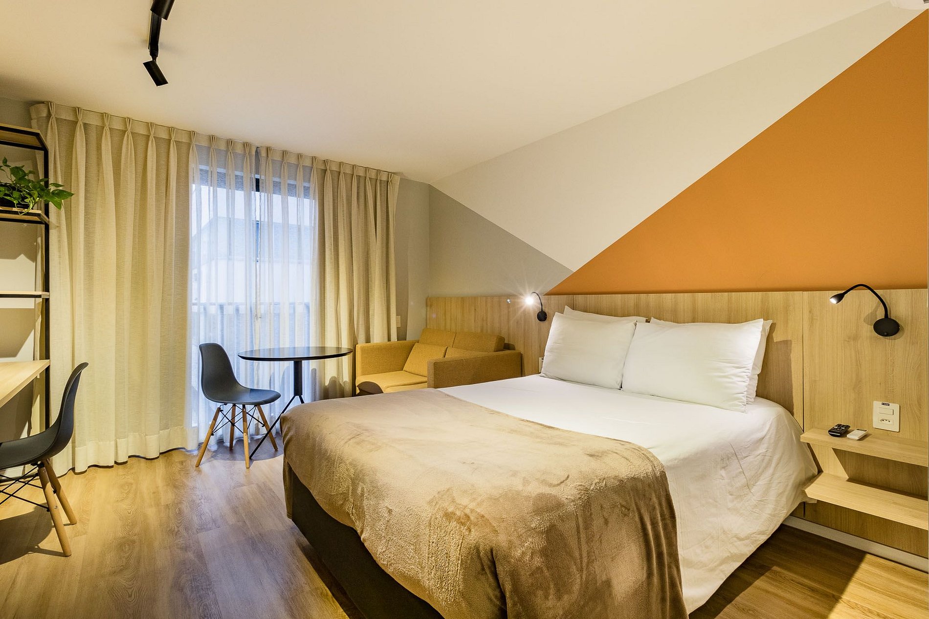 No quarto, você encontrará uma cama de casal confortável e um armário espaçoso, oferecendo amplo espaço para guardar suas roupas e pertences. O apartamento também dispõe de Wi-Fi para manter você conectado(a) e entretido(a) durante sua estadia.