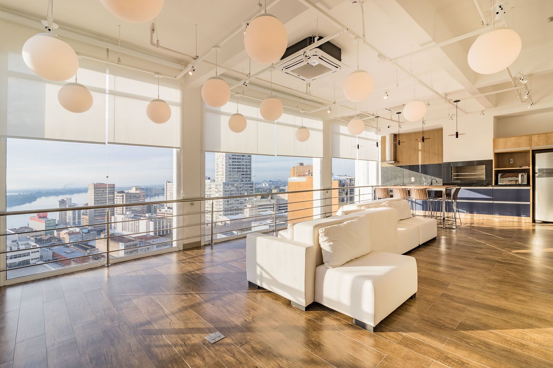 Este prédio oferece uma série de comodidades excepcionais. Ao entrar no amplo lobby, você será recebido com estilo e conforto. No rooftop/cobertura, uma churrasqueira e parrilla aguardam para você saborear deliciosas refeições enquanto aprecia a vista panorâmica. A piscina no terraço oferece momentos relaxantes com uma vista deslumbrante do Rio Jacuí e do Guaíba. Para ocasiões especiais, o salão de festas está disponível para uso dos moradores mediante reserva antecipada. Além disso, você terá acesso à conveniência de lavanderia (temporariamente indisponível) e ainda poderá desfrutar do comércio local nos primeiros pavimentos, que em breve contará com lojas e restaurantes incríveis.