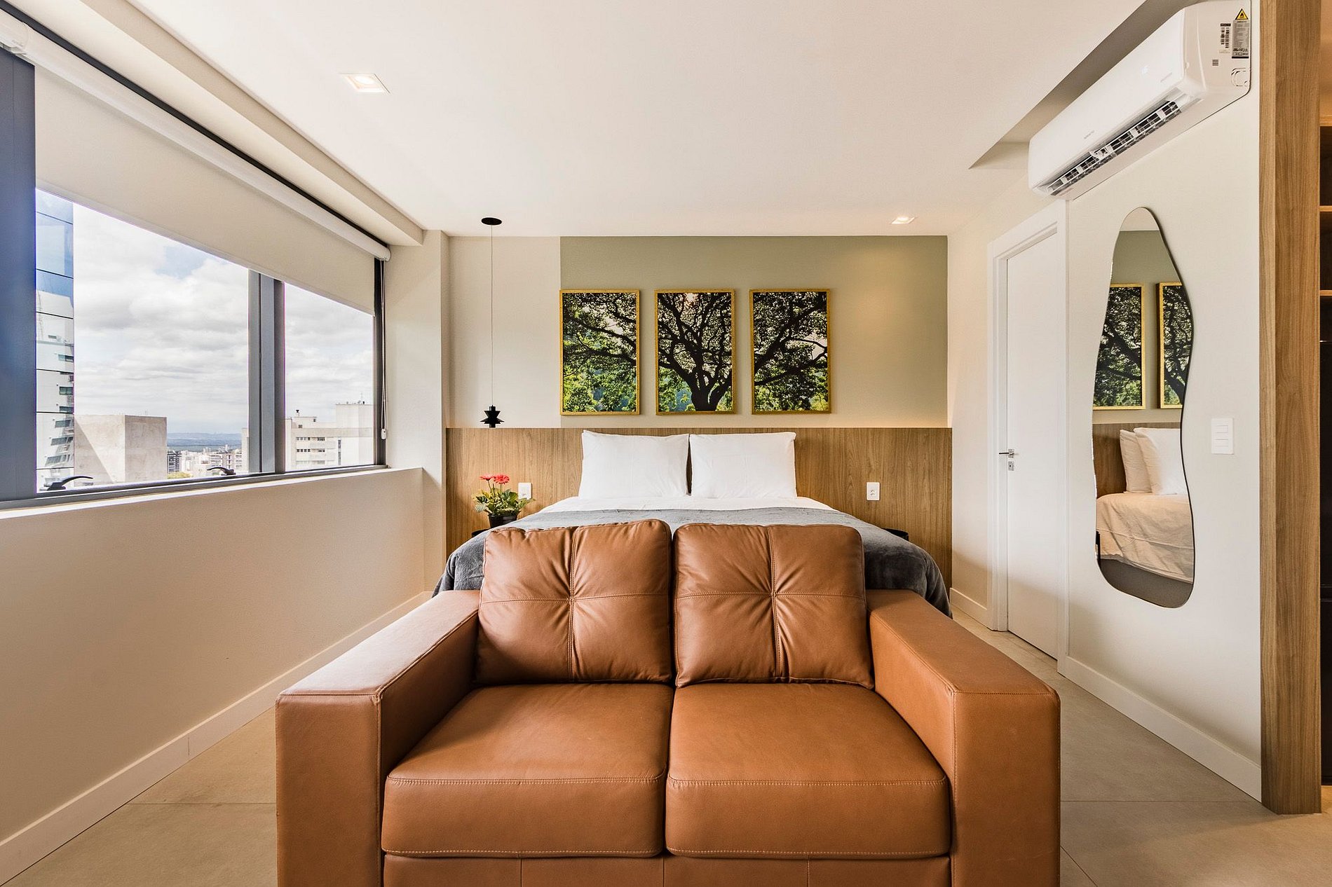 Apartamento mobiliado e pronto para morar, se hospedar ou trabalhar em home office no Carlos Gomes Square, um prédio de luxo em um complexo comercial que também conta com 2 torres comerciais e 1 shopping (Bordazza Shopping, localizado no bairro Três Figueiras, Porto Alegre. Flexível para estadias curtas ou longas, com praticidade, tecnologia e serviços à sua disposição.