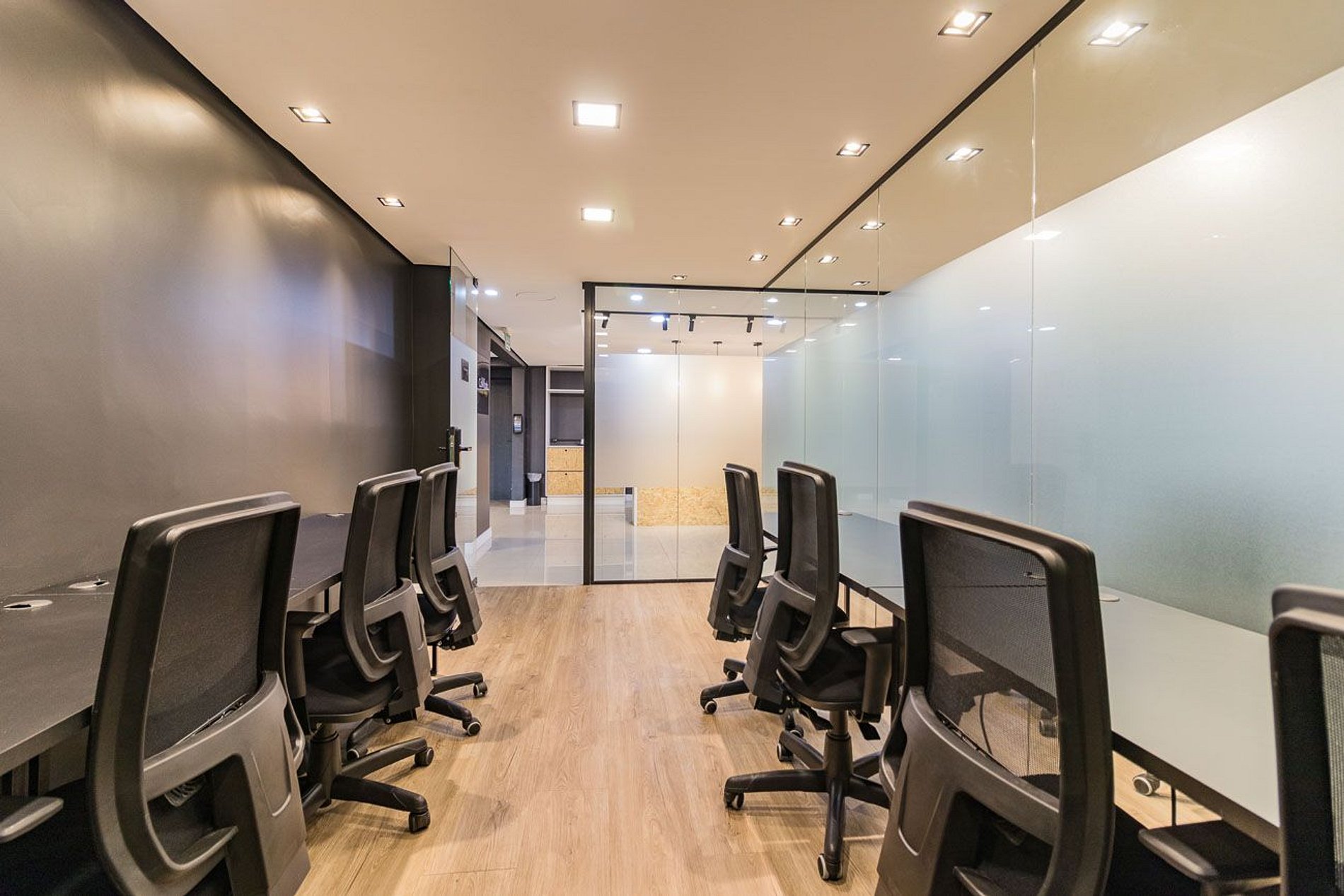 Você também tem direito a uso a outras áreas do prédio, como a cozinha compartilhada e o mini mercado que ficam no mezanino. É importante respeitar o silêncio no espaço de trabalho e as regras das outras áreas do prédio.